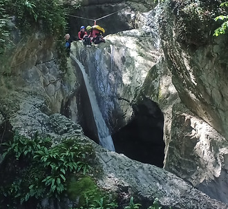 Particularités : Le rappel arrosé de 25m pour accéder au fond du canyon.